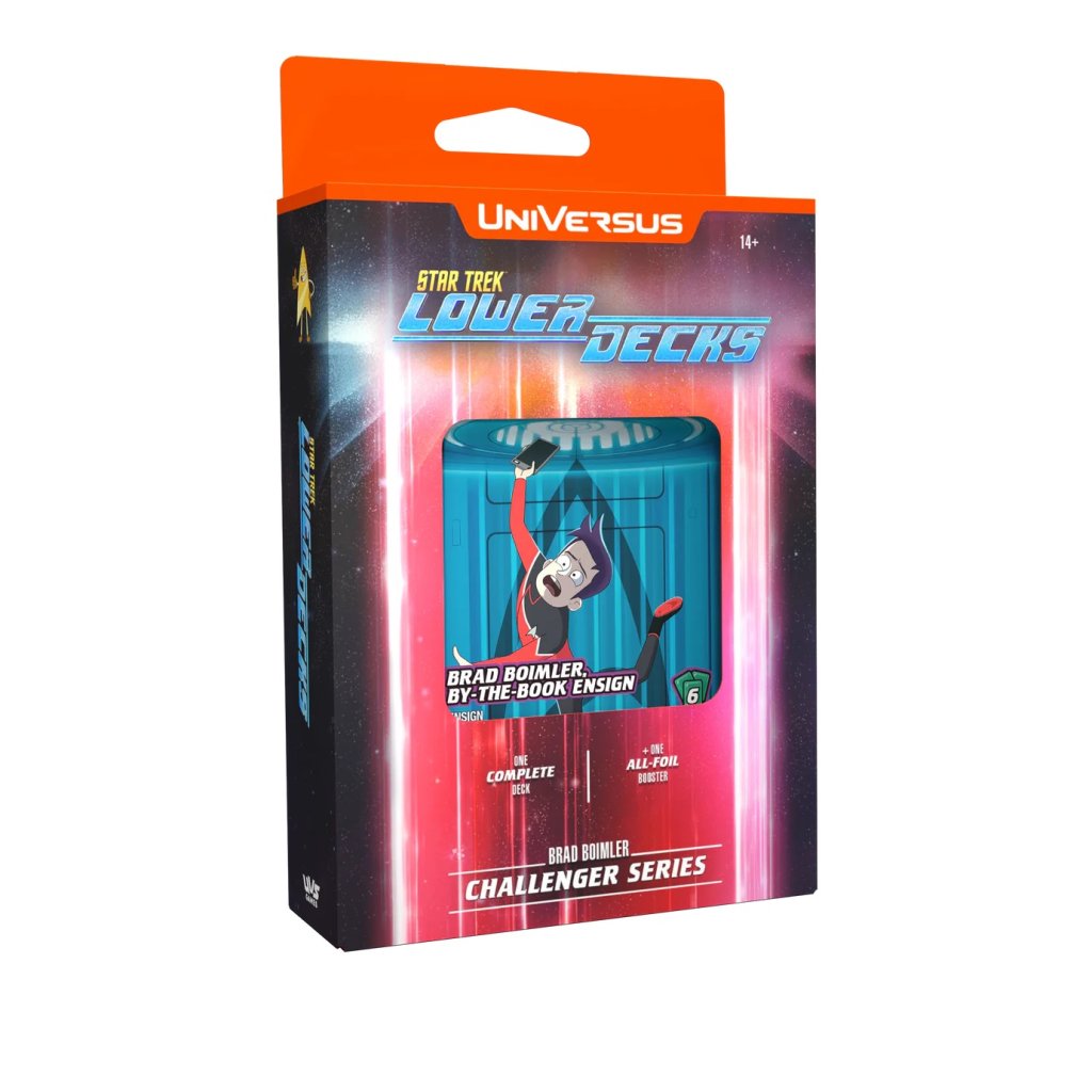 - Pridajte sa k posádke v podpalubí so sériou STAR TREK™ Lower Decks Challenger. Tieto balíčky so 60 kartami sú pripravené na hru ihneď po vybalení z krabice a obsahujú postavy z lode U.S.S. Cerritos: Mariner, Boimler, Tendi a Rutherford.
