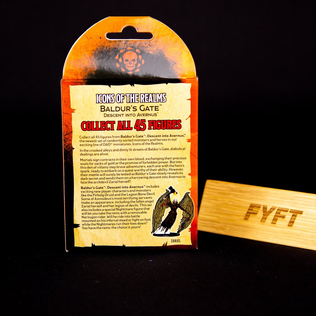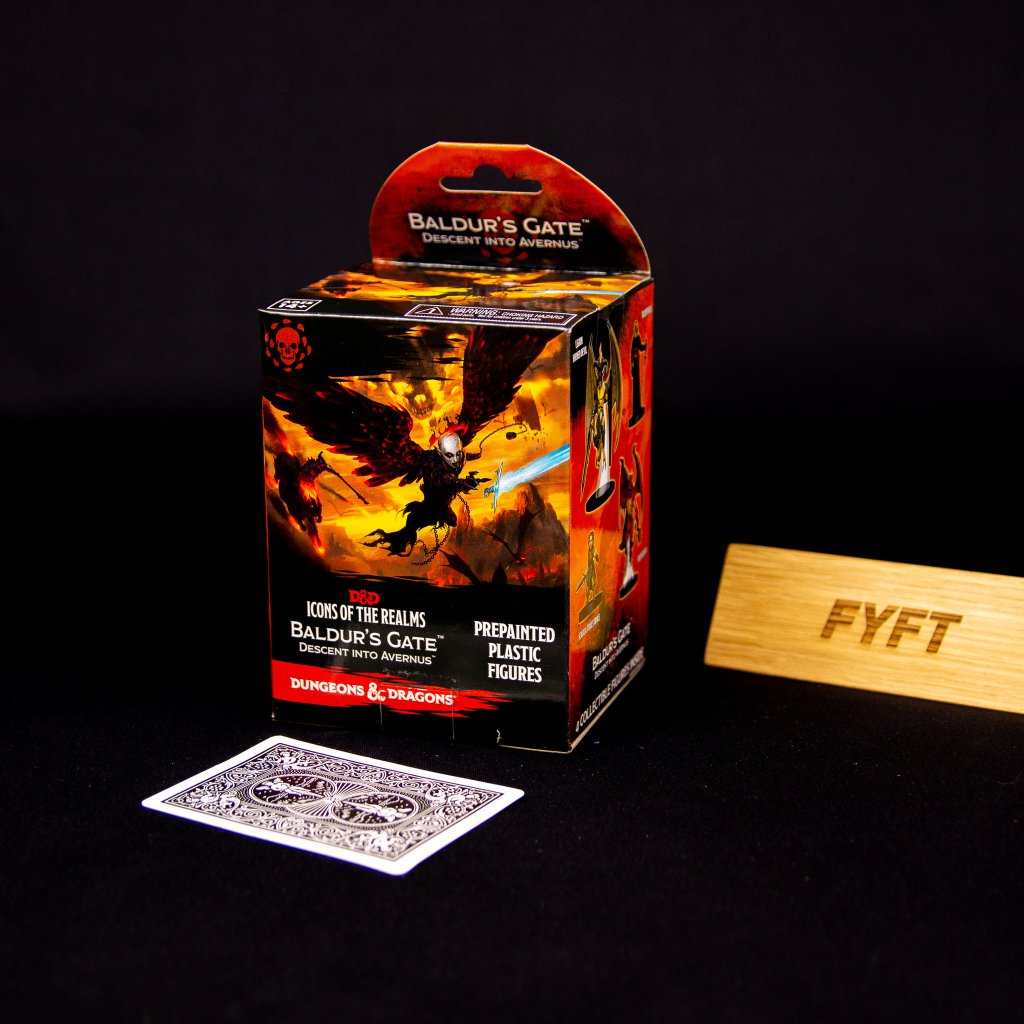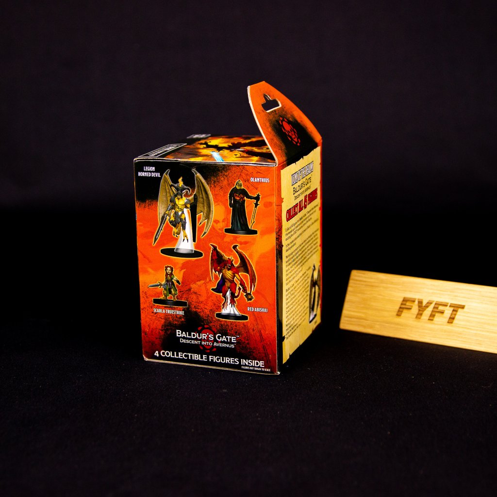 - Baldur's Gate: Descent into Avernus je škatuľa, ktorá obsahuje 4 náhodné zberateľské figúrky (1 veľkú a 3 stredné/malé) zo sveta Dungeons & Dragons Icons of the Realms.