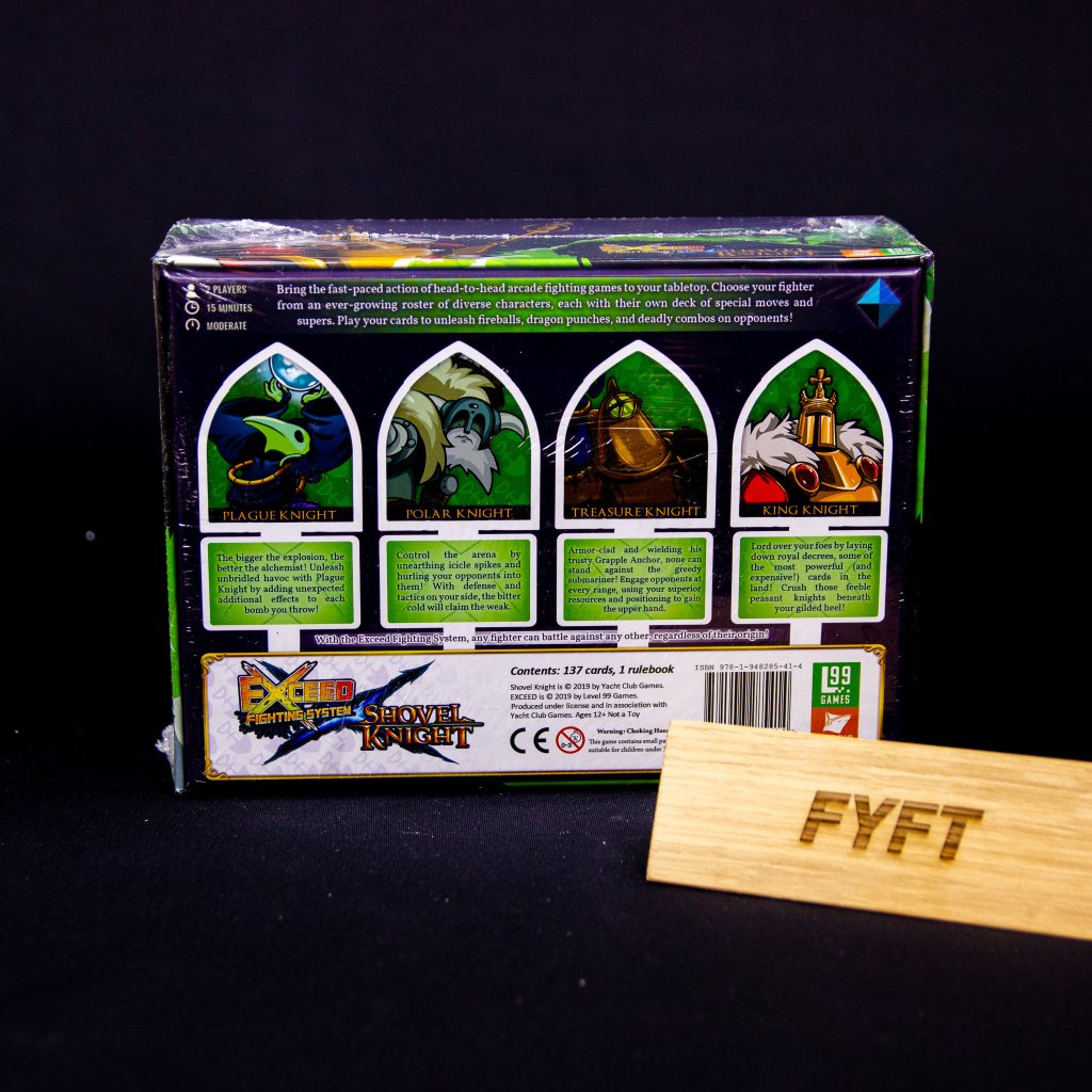 - V krabici Exceed: Shovel Knight Shadow Box nájdeš 4 neohrozených bojovníkov do hry. Vyber si toho svojho a zaži svižnú kombajnu podľa klasických herných automatov aj u seba doma.