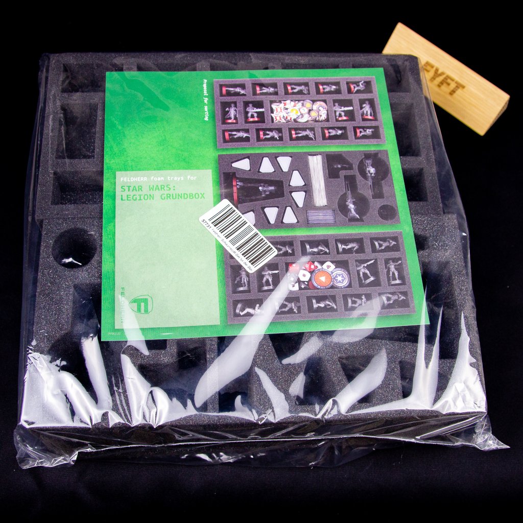 - Insert je penový rozdelený na 3 traye, do ktorých sa zmestí celý obsah základnej krabice Star Wars Legion.