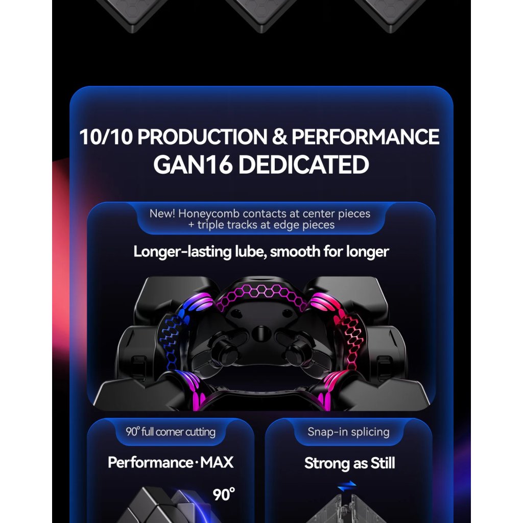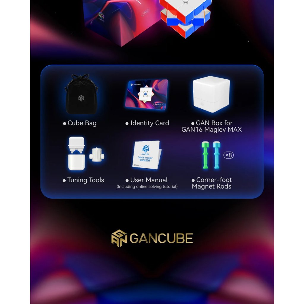 GAN 16 Maglev MAX UVZaži špičkovú inováciu v oblasti speedcubingu s GAN16 MagLev MAX UV 3x3! Dlho očakávaná vlajková loď spoločnosti GAN pre rok 2025. Jedna z najuznávanejších značiek vo svete cubingu opäť posunula latku vyššie a prináša 3x3 kocku, ktorá kombinuje technológie novej generácie s výkonom a stabilitou. Najväčšou zmenou na GAN 16 sú centier skirts (drážka, sukienka pod stredom), ktoré dodávajú kocke unikátny feel. |
