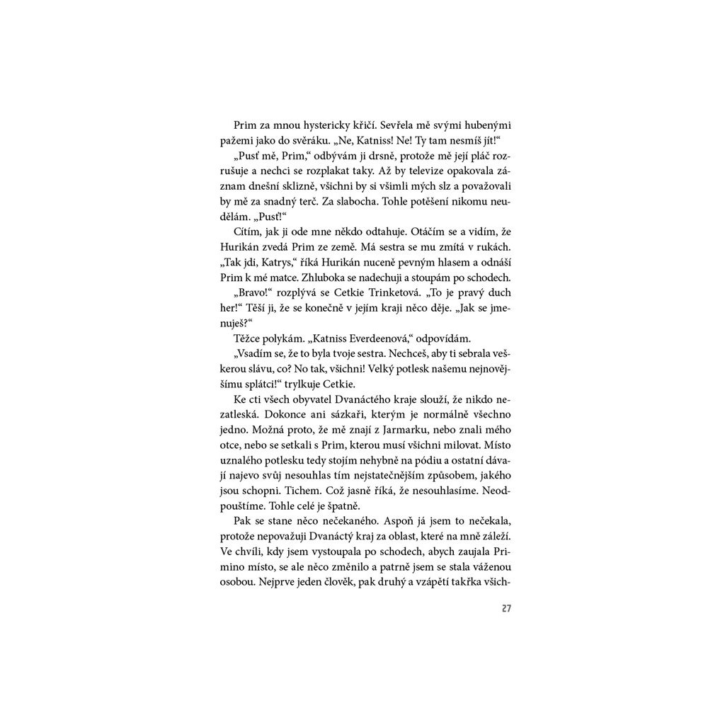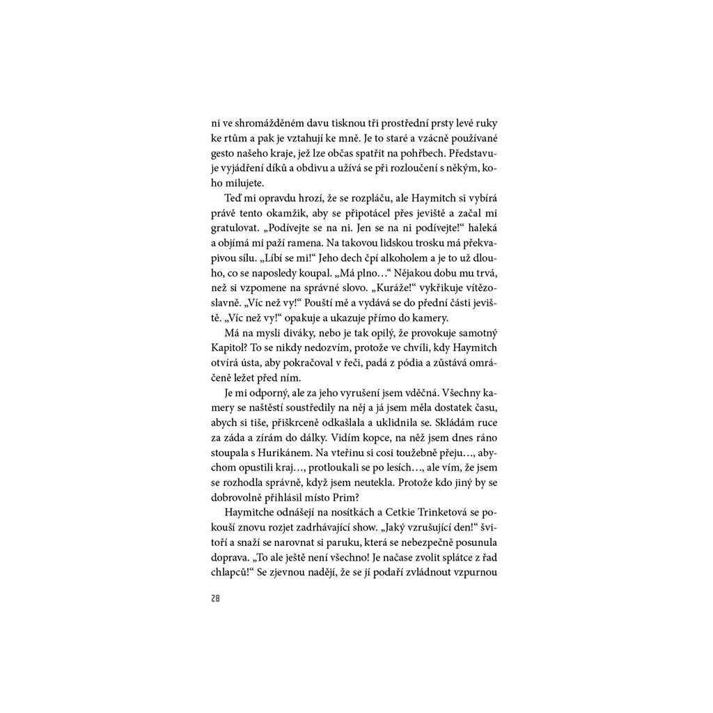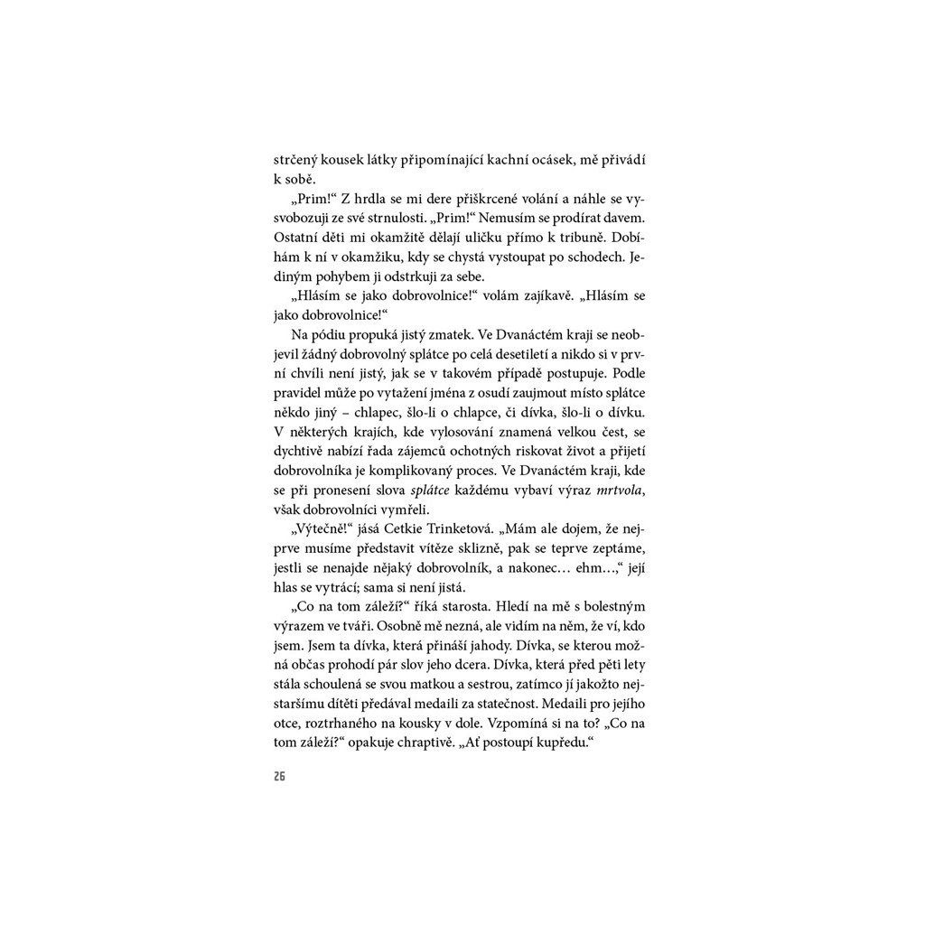 Země Panem – dvanáct krajů a hlavní město Kapitol, které všem ostatním krajům vládne. Rok co rok musí jedna dívka a jeden chlapec z každého kraje nastoupit do zvrácené televizní reality show a bojovat o svůj život. Vítězství v klání Hunger games znamená slávu a bohatství. Prohra znamená jistou smrt. Šestnáctiletá Katniss se do her přihlásí dobrovolně místo své mladší sestry, na kterou padl los. Má šanci mezi nebezpečnými soupeři přežít?