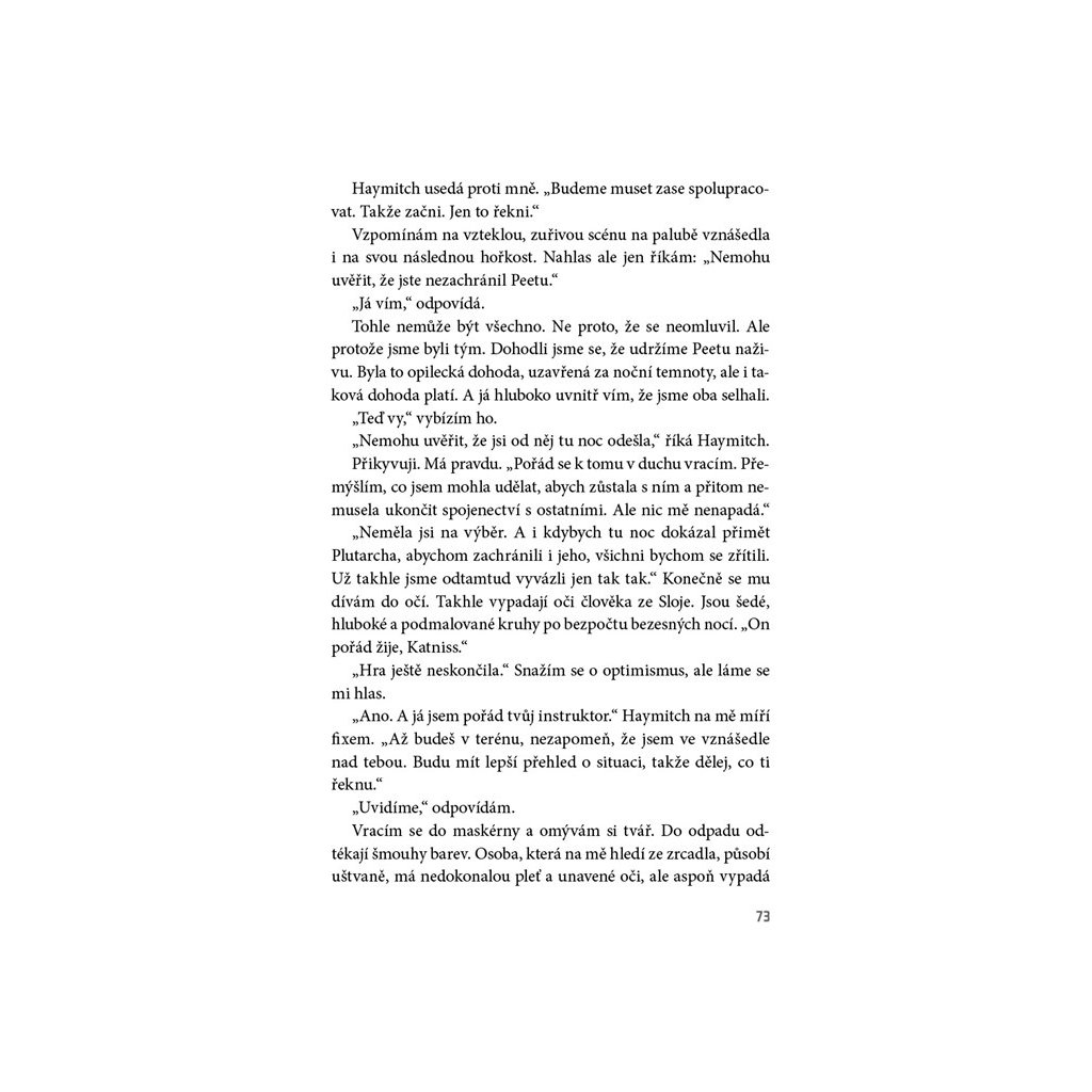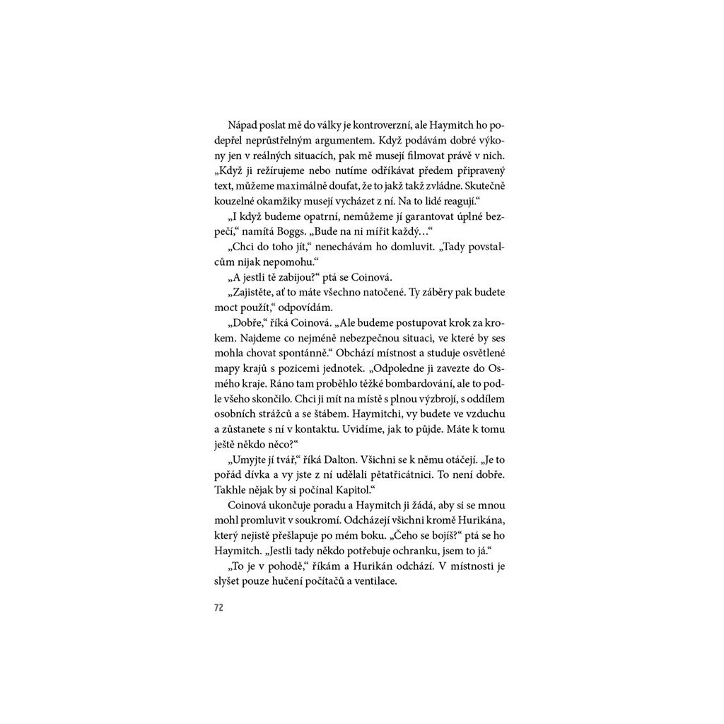 Proti všem očekáváním přežila Katniss hladové hry dvakrát, ale ani poté nemá klid. V zemi Panem vypuklo povstání. Kapitol je naštvaný a chce pomstu. Kdo by měl za nepokoje zaplatit? Katniss. A co je nejhorší? Prezident Snow dal jasně najevo, že v bezpečí není vůbec nikdo. Bude připravovaná revoluce v čele s Katniss úspěšná? Cena může být hodně vysoká.