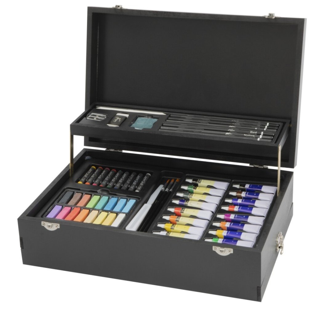 Umelecká maliarska sada Art Box v pevnom drevenom boxe pre najrôznejšie metódy maľovania.