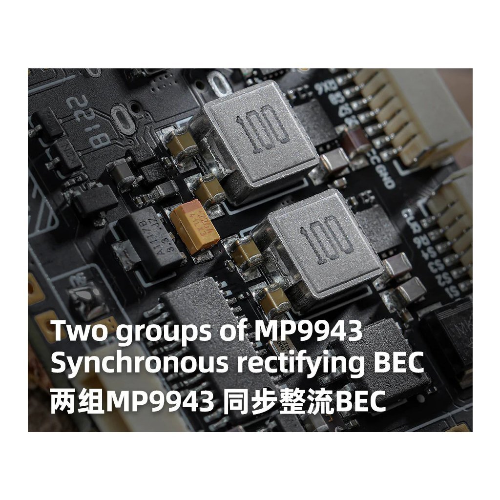 - BEC: 5V 2,5A, 9V 2A, 3.3V 0,5A
