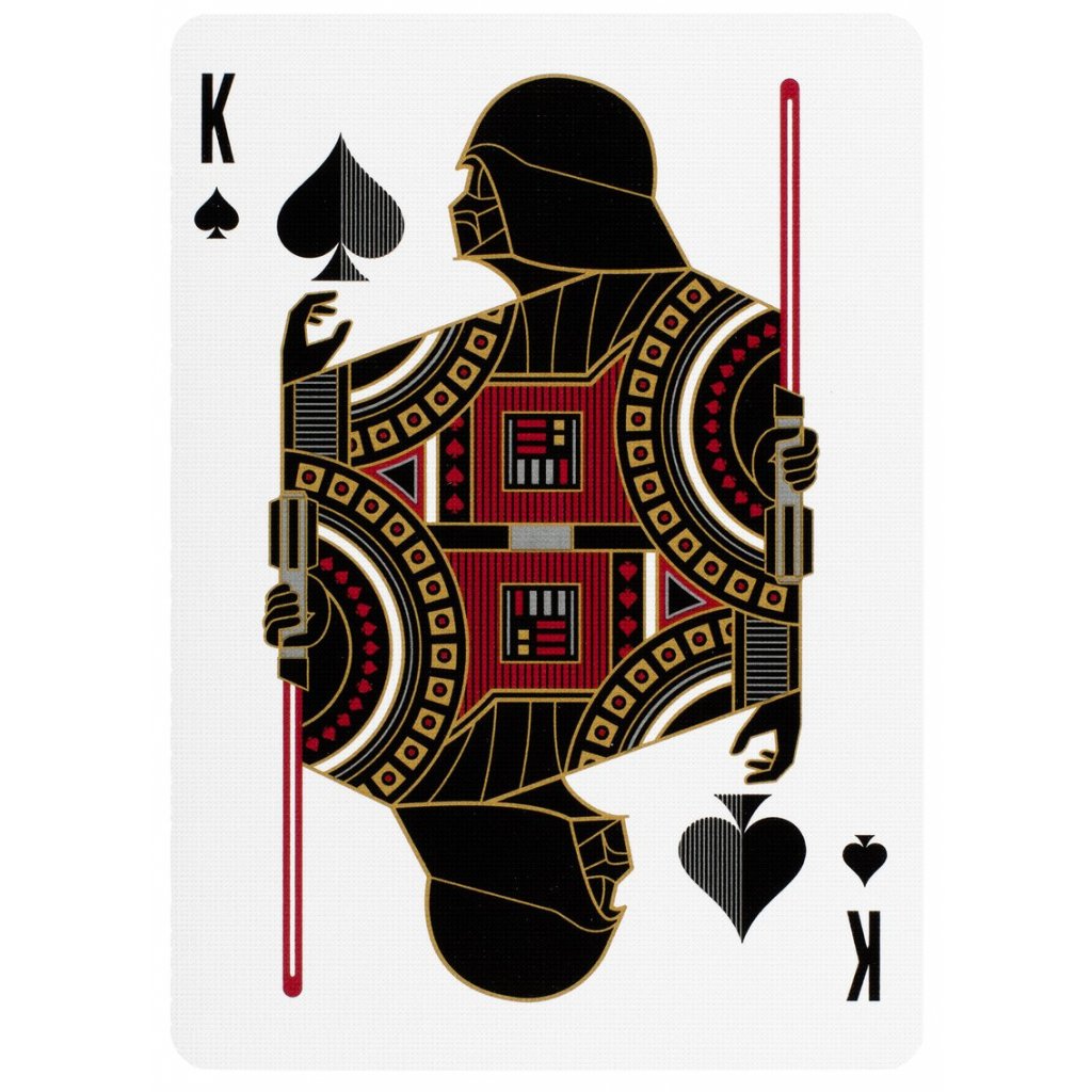 - Karty J, Q, K znázorňujú postavy Darth Vader, Boba Fett, Kylo Ren ai. Celkom na obrázkových kartách nájdeš 12 postáv ako z temnej tak zo svetlej strany.