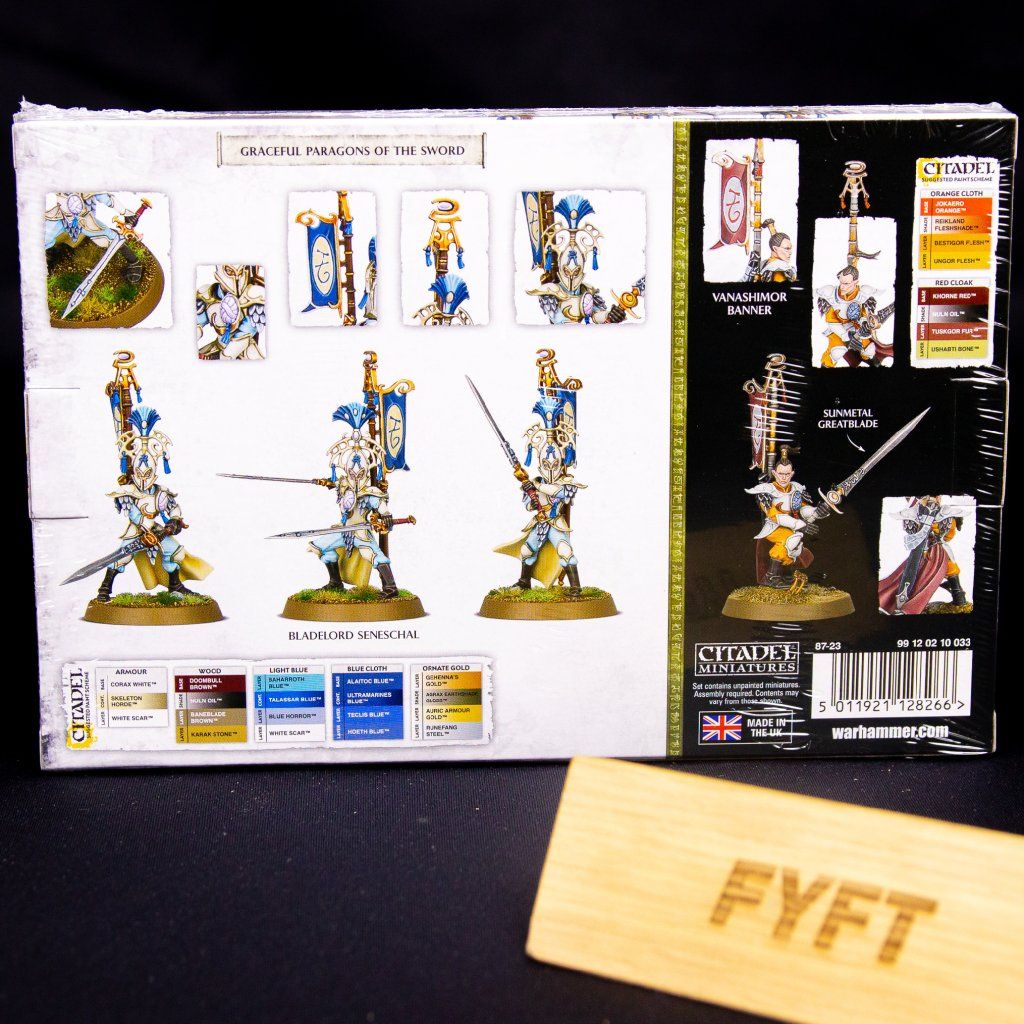 - Vnútri nájdeš 5 Vanari Bladelords, z ktorých jeden model môžeš zložiť ako mužský/ženský Seneschal vyzbrojený Sunmetal Greatblade alebo Sunmetal Dual Blades
